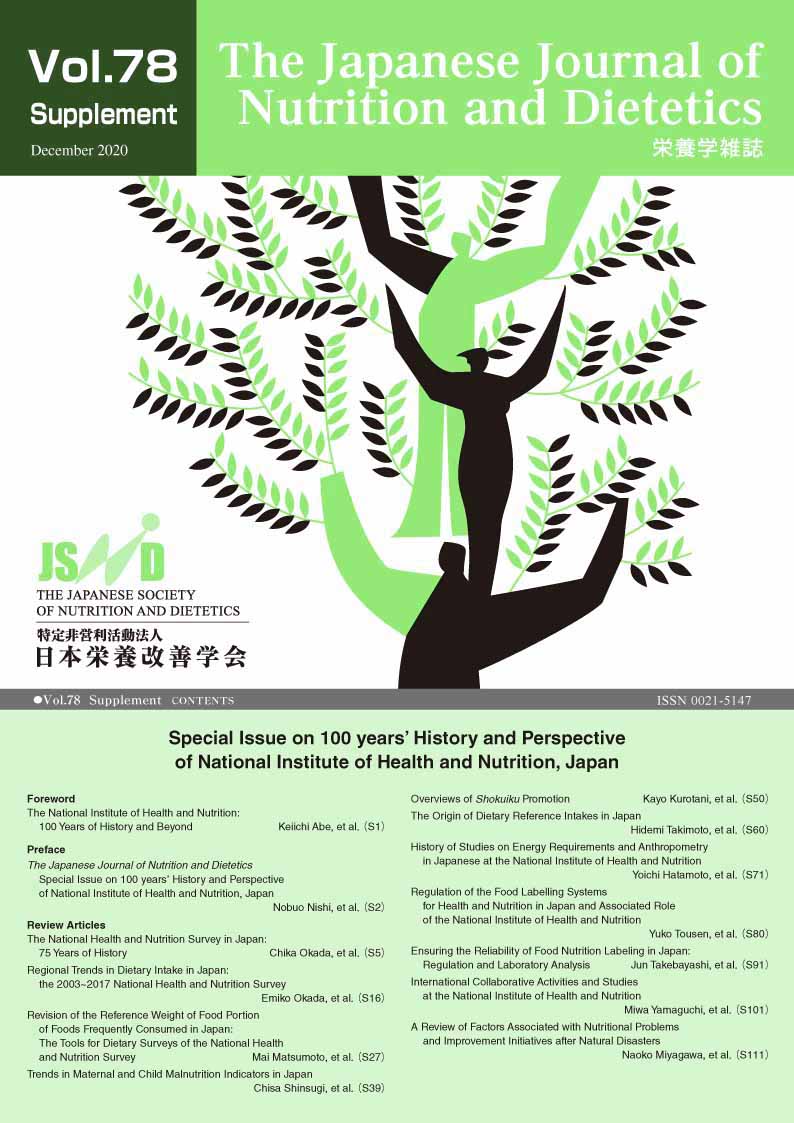 The journal has been published since 1941. It is now published bimonthly, with a total of about 350 pages per volume, including 15 original peer-reviewed articles and 6 review papers in Japanese with English abstracts. Approximately 4,000 copies are printed per issue. The major areas of original research are community nutrition, nutrition education, food services, clinical nutrition, and other applied nutrition.